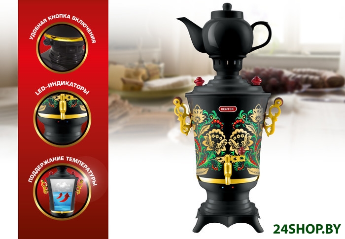 Все приборы для нагрева и кипячения воды можно разделить на три типа: электрочайники, термопоты и самовары. Электрочайник состоит из нагревательного элемента и кувшина, в котором вода закипает и остывает. Термопот совмещает в себе функции чайника (вода доводится до кипения) и термоса (температура воды держится на заданном уровне). Самовар – ещё более функциональное устройство. Кроме быстрого подогрева, а также способности долго сохранять температуру воды, он умеет заваривать чай. Для этого в верхней части у него есть специальный заварник.