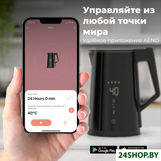 - Терморегулятор: 40, 55, 70, 80, 90, 100°C (шаг 1° с использованием приложения AENO)