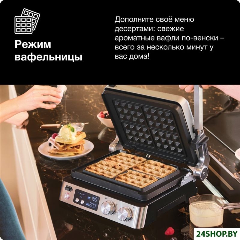 - Рабочая поверхность: вафельница, гладкая плита, рифленая плита