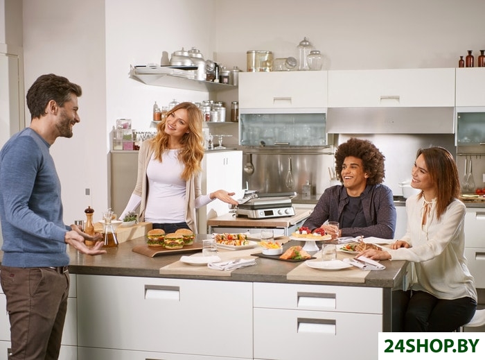 Бесконтактный электрогриль по принципу приготовления ближе к классическому грилю на углях: порции продуктов располагаются на металлической решетке, нагревательный элемент помещен под решетку, стекающий жир собирается в поддон. Контактный односторонний гриль представляет собой нагревательную пластину, рифленую или плоскую. Единственное его отличие от обычной сковороды - стекание жира в поддон. Двухсторонний контактный гриль, или гриль-пресс, представляет собой две шарнирно соединенные нагревательные пластины. Это наиболее дорогой и при этом наиболее удобный вид грилей.