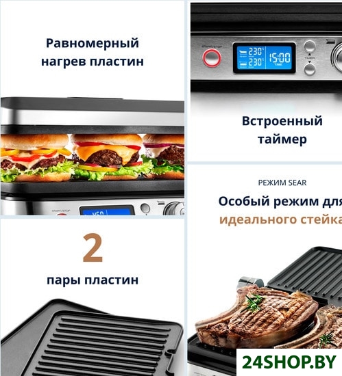 - Конструкция: двухсторонний (гриль-пресс)