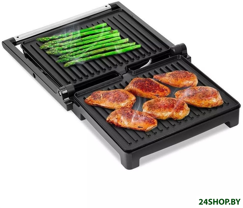 Бесконтактный электрогриль по принципу приготовления ближе к классическому грилю на углях: порции продуктов располагаются на металлической решетке, нагревательный элемент помещен под решетку, стекающий жир собирается в поддон. Контактный односторонний гриль представляет собой нагревательную пластину, рифленую или плоскую. Единственное его отличие от обычной сковороды - стекание жира в поддон. Двухсторонний контактный гриль, или гриль-пресс, представляет собой две шарнирно соединенные нагревательные пластины. Это наиболее дорогой и при этом наиболее удобный вид грилей.