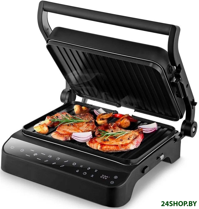 - Комплектация: съемные рифленые панели, съемный поддон для жира, скребок для чистки, держатель крышки, инструкция