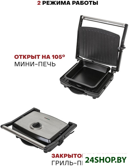 - Конструкция: двухсторонний (гриль-пресс)