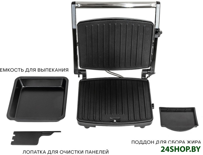 - Комплектация: - электрический гриль, - панели-гриль, - емкость для запекания, - гарантийный талон, - инструкция на русском.