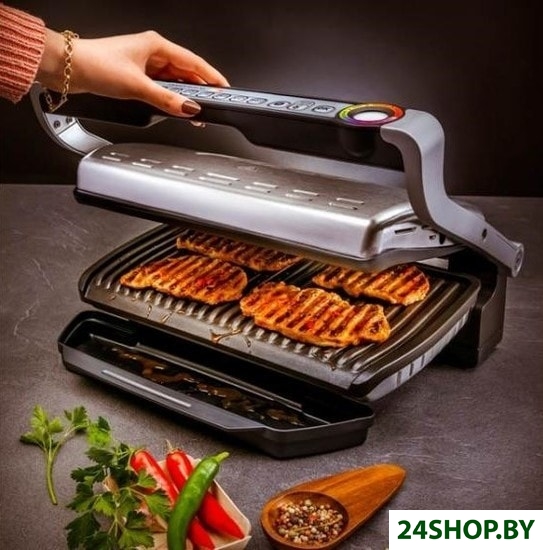 Бесконтактный электрогриль по принципу приготовления ближе к классическому грилю на углях: порции продуктов располагаются на металлической решетке, нагревательный элемент помещен под решетку, стекающий жир собирается в поддон. Контактный односторонний гриль представляет собой нагревательную пластину, рифленую или плоскую. Единственное его отличие от обычной сковороды - стекание жира в поддон. Двухсторонний контактный гриль, или гриль-пресс, представляет собой две шарнирно соединенные нагревательные пластины. Это наиболее дорогой и при этом наиболее удобный вид грилей.
