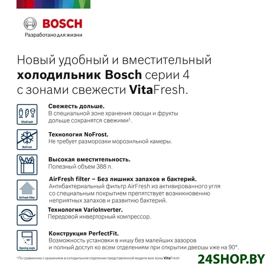 Описание и характеристики Bosch Serie 4 VitaFresh KGN39VW25R