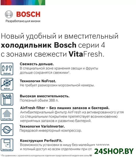 Описание и характеристики Bosch Serie 4 VitaFresh KGN39XC27R