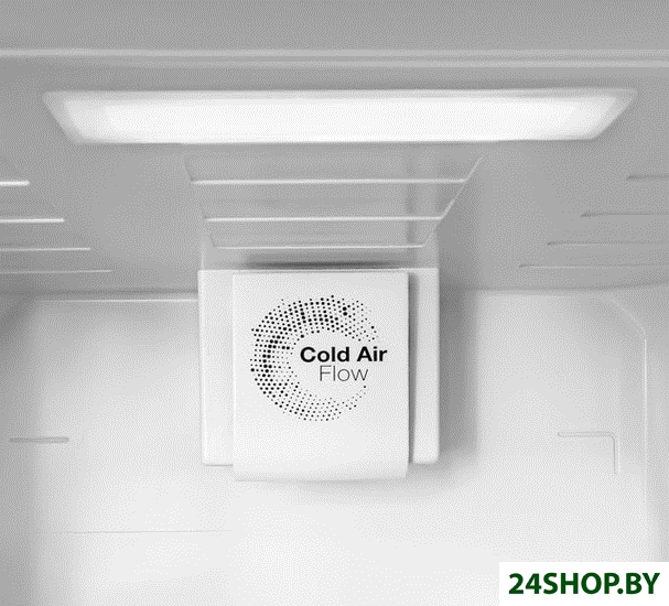 - Прочие оригинальные функции: СИСТЕМА ОХЛАЖДЕНИЯ FROST FREE Сухое и холодное пространство равномерно продувается во множестве точек холодильной и морозильной камеры посредством вентилятора. Холодный воздух равномерно распределяется во внутреннем пространстве занятом полками, обеспечивая тем самым не только равномерное и правильное охлаждение продуктов, но и не допускает повышение влажности и образование льда. холодильное отделение постоянно охлаждено