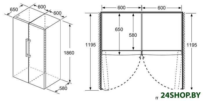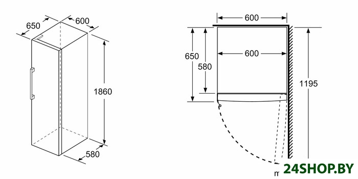 - Глубина: 65 см