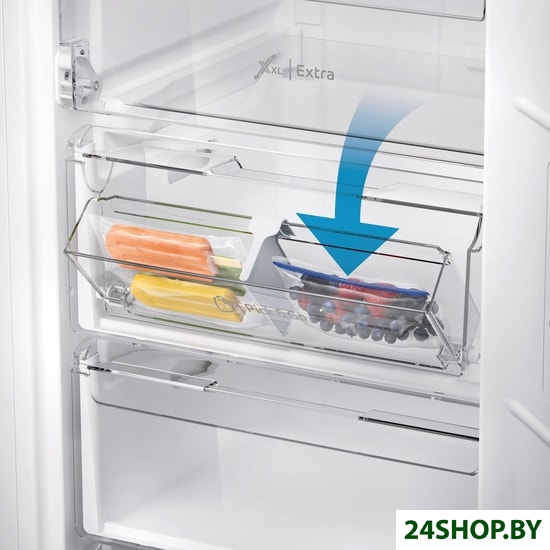 Температура в зоне свежести держится около 0 градусов по Цельсию, что позволяет продуктам дольше оставаться свежими. В некоторых моделях холодильников зона свежести разделена на две части: область с повышенной влажностью (достигает 90-100 процентов) для хранения фруктов и овощей и область с пониженной влажностью (не больше 50 процентов) для свежей рыбы и мяса.