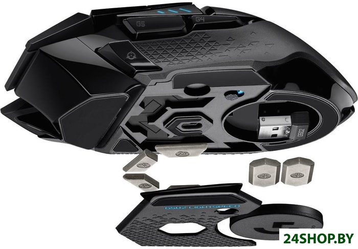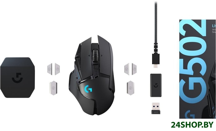 - Комплектация: - Беспроводная мышь Logitech G502 Lightspeed.- Беспроводной передатчик Lightspeed.- Адаптер-удлинитель для беспроводного передатчика.- Кабель для зарядки и передачи данных.- Небольшая коробка для различных аксессуаров и дополнений.- Четыре грузика по 2 г.- Два грузика по 4 г.- Инструкция.