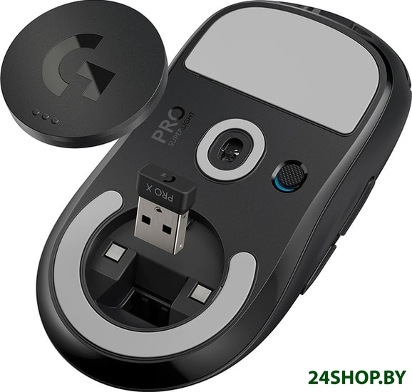 - Комплектация: - Беспроводная игровая мышь PRO X SUPERLIGHT;- Беспроводной приемник LIGHTSPEED;- Кабель для зарядки и передачи данных;- Удлинитель-адаптер для приемника;- Дополнительная противоскользящая накладка;- Салфетка для протирания противоскользящих накладок;- Дополнительная защитная крышка отсека с тефлоновым покрытием на нижней поверхности;- Документация пользователя.