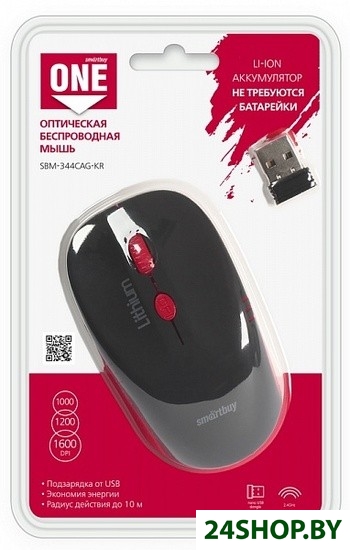 Описание и характеристики SmartBuy Wireless Optical Mouse SBM-344CAG-KR (красный)