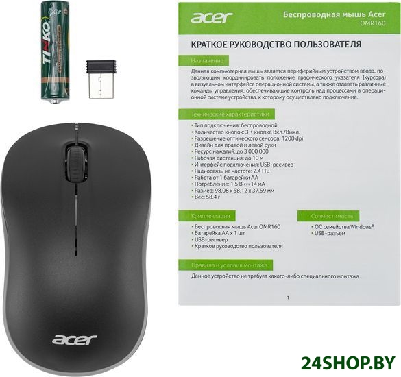 - Питание мыши: 1 x AA