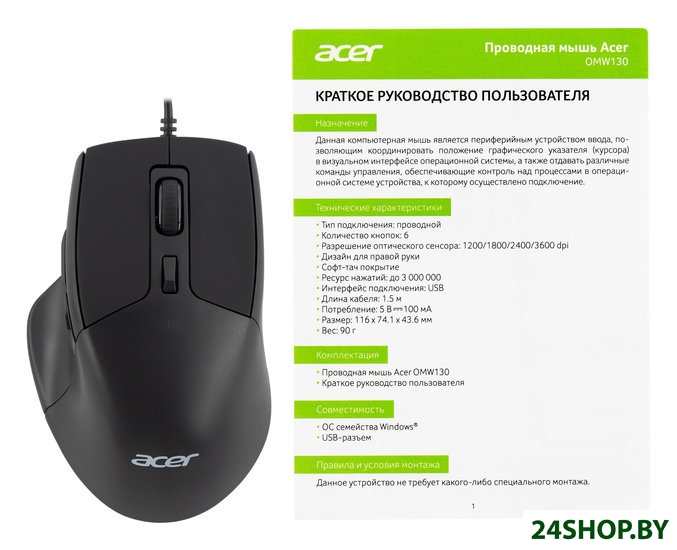 Описание и характеристики Acer OMW130 (черный) (ZL.MCEEE.00J)