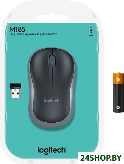 Описание и характеристики Logitech M185 (черный/серый) (910-002238)