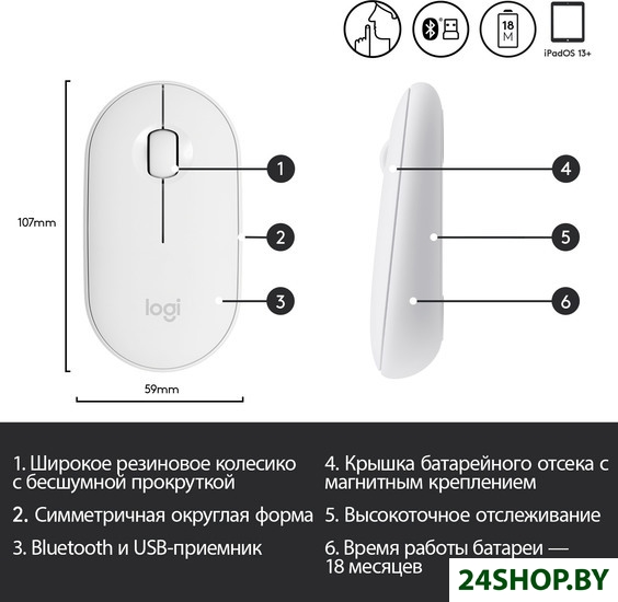 Описание и характеристики Logitech M350 Pebble (белый)