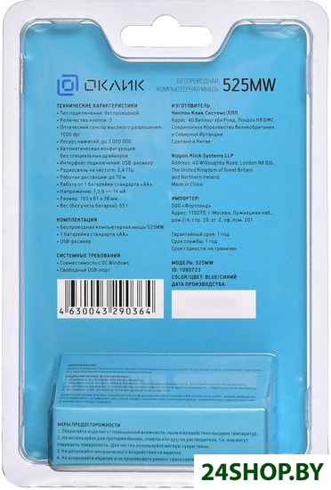 Описание и характеристики OKLICK 525MW (1090723) (синий)