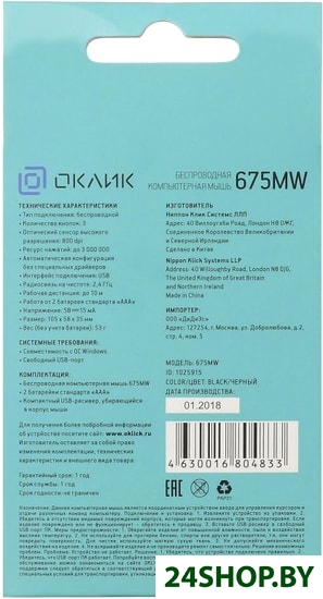 Описание и характеристики OKLICK 675MW (черный)