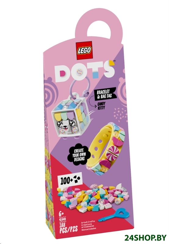 Описание и характеристики LEGO Dots Браслет и бирка для сумки Карамельная киса 41944