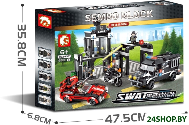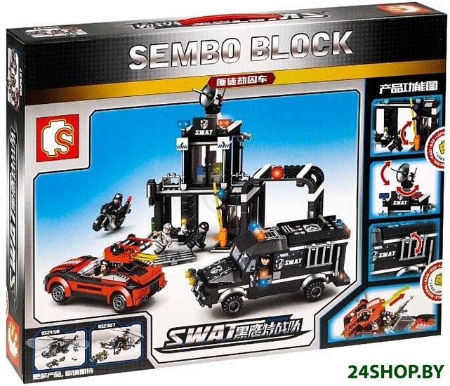 Описание и характеристики Sembo Block Black Hawk Special Forces 102437 Bandit Robbing Prison Car