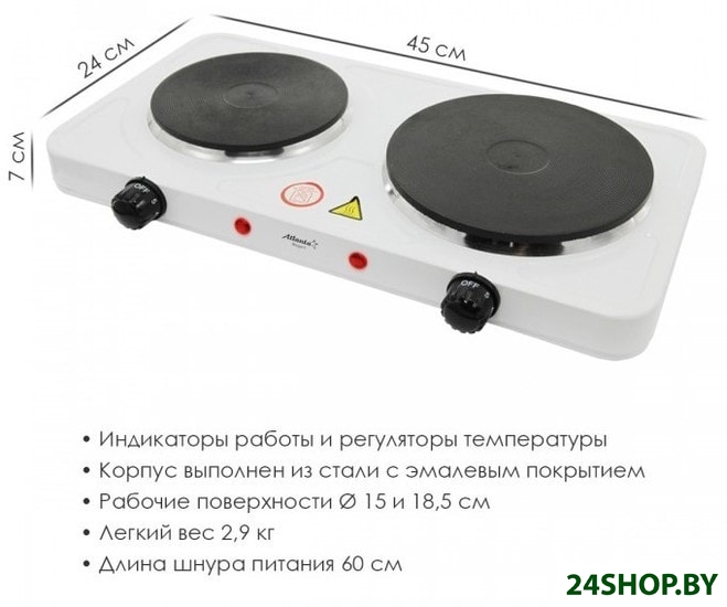 - Количество конфорок/зон нагрева: 2