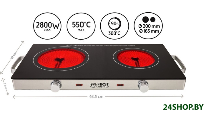- Количество конфорок/зон нагрева: 2