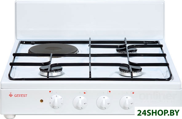 - Тип: газовая (3 газовые горелки, 1 электроконфорка)