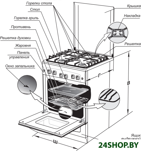 - Дверца духовки: откидная