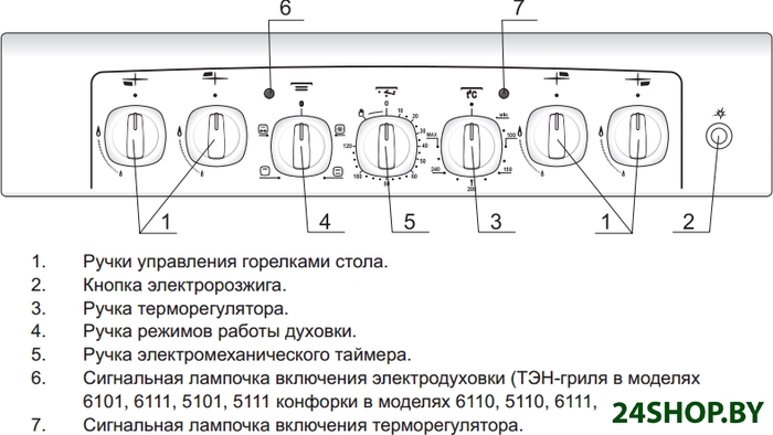 - Газовые конфорки: 4