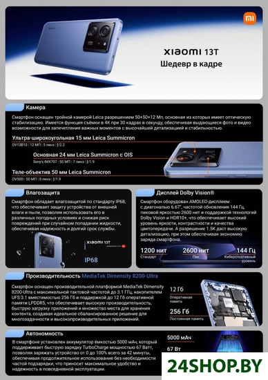 Описание и характеристики Xiaomi 13T 12GB/256GB международная версия (черный)