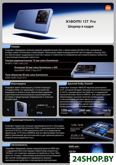 Описание и характеристики Xiaomi 13T Pro 12GB/512GB международная версия (черный)