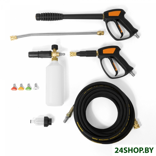 - Комплектация: Мойка высокого давления - 1 шт.Профессиональный пистолет DPG350 550мм - 1 шт.Металлическое копье из нержавеющей стали 455 мм - 1 шт.Короткий пистолет для пеногенератора - 1 шт.Армированный шланг высокого давления 10м - 1 шт.Профессиональный пеногенератор - 1 шт.Быстросъемные форсунки (0°/15°/25°/40°) - 4 шт.Фильтр тонкой очистки - 1 шт.Полнотелые широкие колеса 10" - 2 шт.Кабель подключения 265 мм - 1 шт.Вилка 220В, 16А - 1 шт.Вилка 220В, 32А - 1 шт.ИнструкцияКоробка
