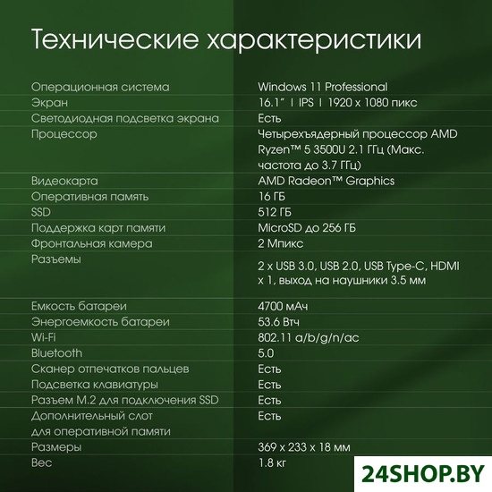 - Диагональ экрана: 16.1"