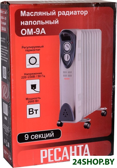 - Количество секций масляного радиатора: 9