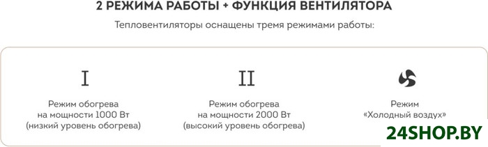 - Регулировка уровня мощности: 1000/2000 Вт