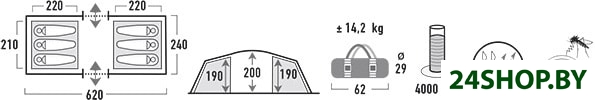 - Водостойкость тента: 4 000 мм вод. ст.