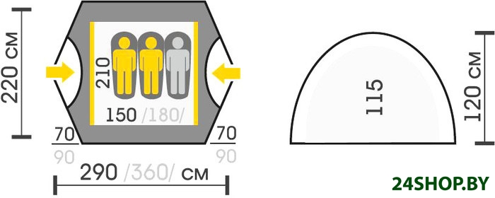Размеры внешней палатки (ДхШхВ)