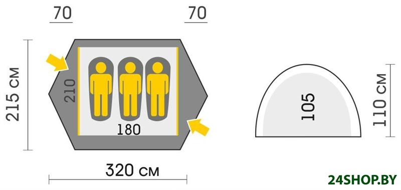 Размеры внешней палатки (ДхШхВ)