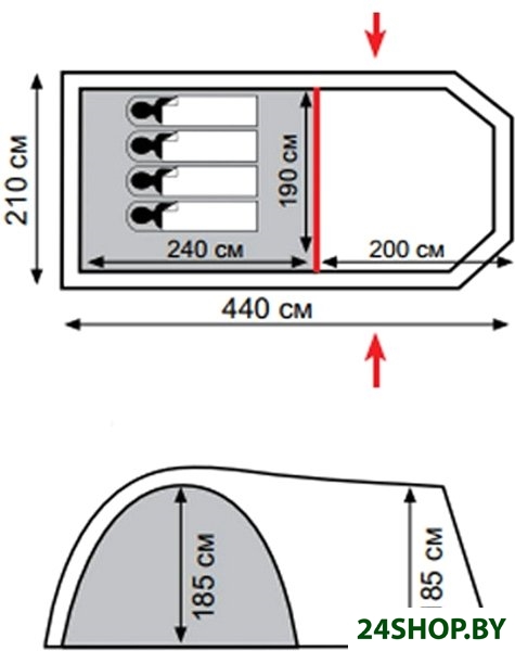 - Материал внутренней палатки: полиэстер