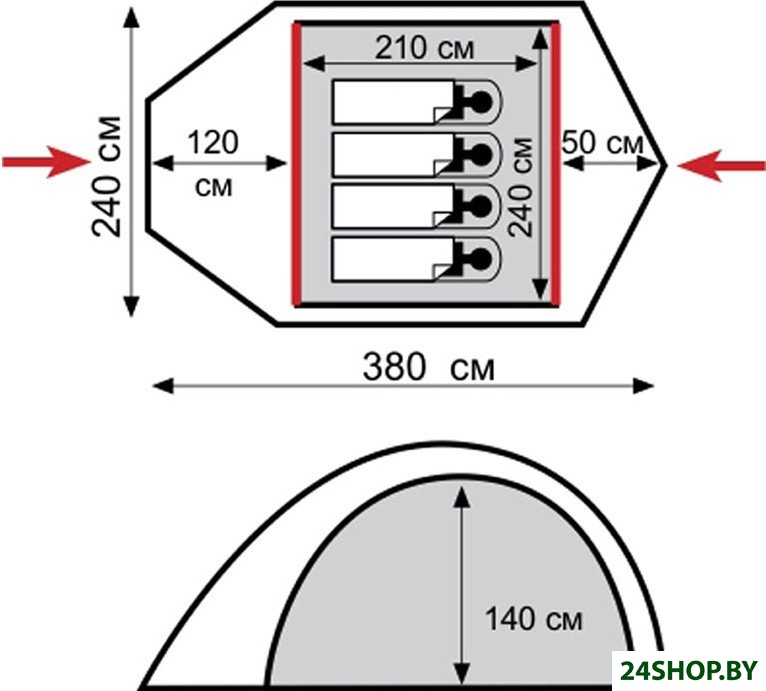 - Размеры палатки: 220х410 см