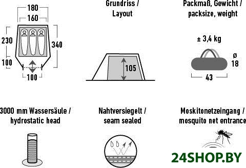 - Водостойкость тента: 3 000 мм вод. ст.