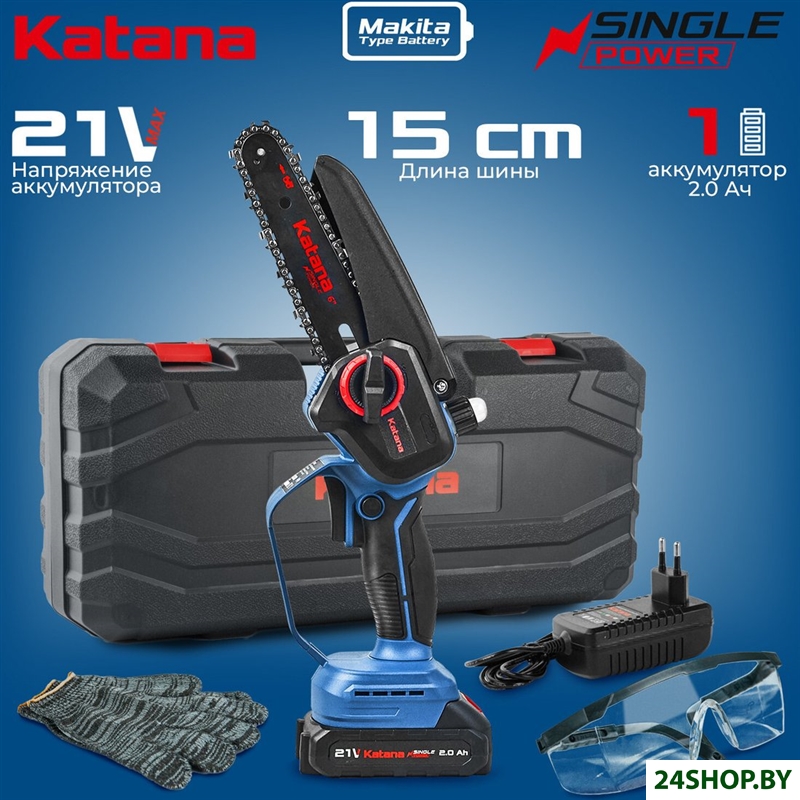 - Комплект поставки: 1. Пила цепная аккумуляторная KATANA – 1 шт.2. Пильная шина – 1 шт.3. Цепь пильная – 1 шт. (для моделей AP3208, AP3208-1, AP3210PRO, AP3210PRO-1 –2 шт.)4. Инструкция по эксплуатации с гарантийным талоном – 1 шт.5. Пластиковый кейс – 1 шт.6. Зарядное устройство – 1 шт.7. Аккумуляторная батарея – 1 шт. (для моделей AP3208, AP3208-1, AP3210PRO,AP3210PRO-1 – 2 шт.)