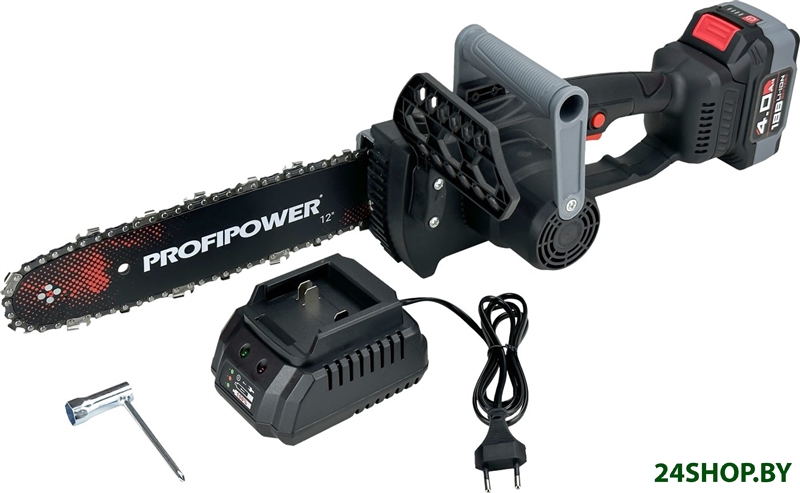 - Комплект поставки: - Пила;- Шина;- Цепь пильная;- Зарядное устройство;- Аккумулятор 4.0 Ач;- Ключ;- Коробка;- Инструкция с гарантийным талоном.