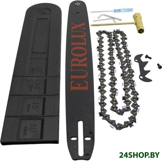 - Комплект поставки: - Бензопила- Шина- Цепь- Защитный кожух шины- Ёмкость для смешивания топливной смеси- Паспорт продукции- Комплект инструментов и принадлежностей