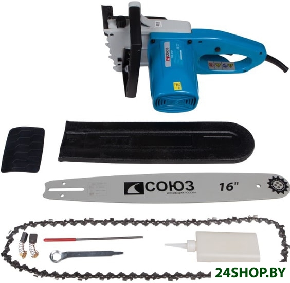 - Комплект поставки: - Шина цепной пилы;- Цепь;- Защитный кожух пильной шины;- Графитовые щетки; - Бутылка для масла;- Гаечный ключ.