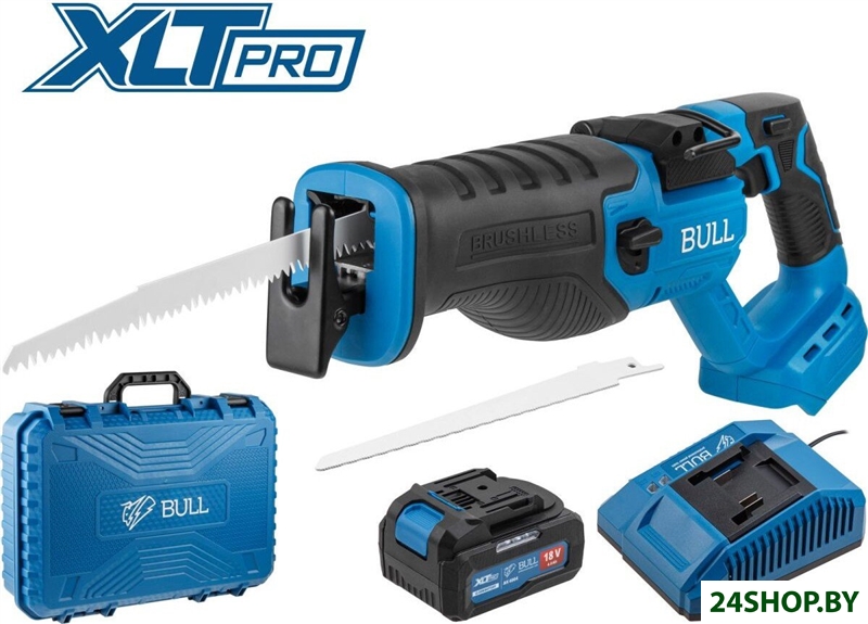 - Комплектация: - Сабельная пила аккумуляторная, 1 шт.;- Пильное полотно, 2 шт.;- Инструкция, 1 шт.;- Аккумулятор BULL AK 4004 18.0 В, 4.0 А*ч, Li-Ion, 1шт.;- Зарядное устройство BULL LD 4004 4 А, 1 шт.;