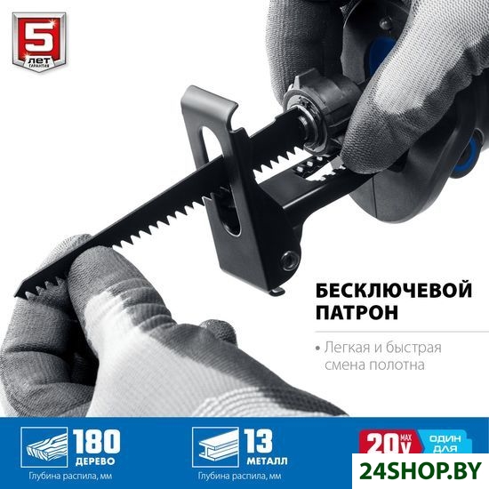 - Комплектация: - Пила сабельная 1- Аккумулятор 1- Зарядное устройство 1- Руководство по эксплуатации 1