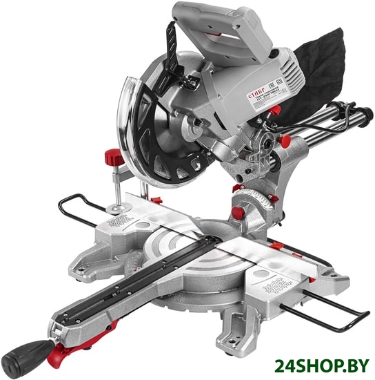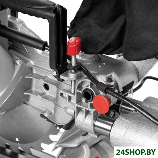 - Комплектация: Пильный диск (установлен), Зажим, Шестигранный ключ, Угольные щетки (запасной комплект), Мешок для сбора опилок, Приспособление для удлинения рабочего стола (2 шт.)